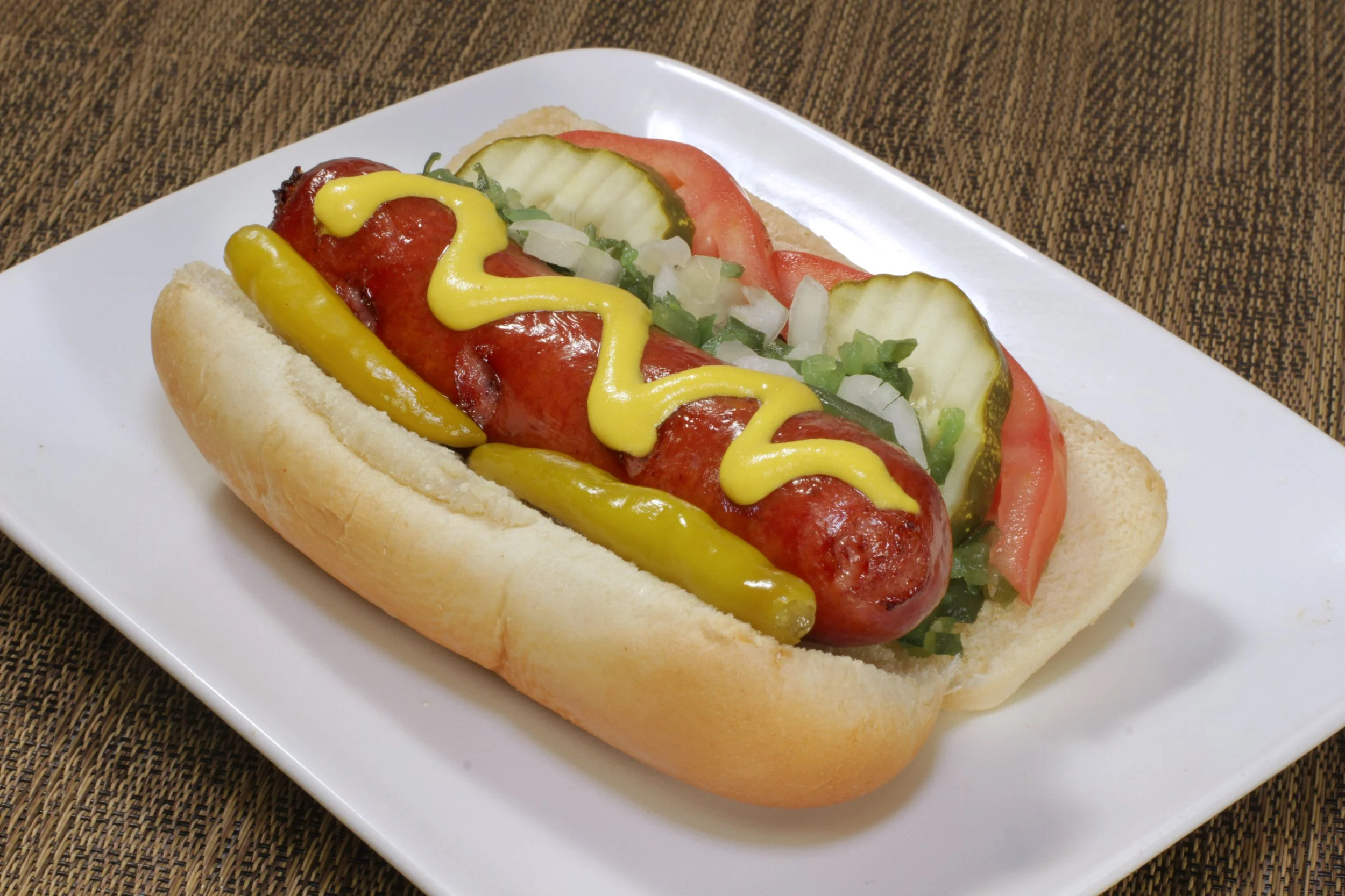 lettuce, tomato, onion, pickle, ketchup, mustard